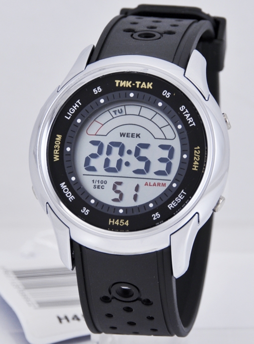 |  нажмите для увеличения | Электронные часы ТИК-ТАК Н454 серые | Материал корпуса | Пластик + металл | | Размеры корпуса | | | длина | 40 мм. | | ширина | 40 мм. | | толщина | 13 мм. | | Материал ремешка/браслета | PU | | Длина часов с ремешком | 245 мм. | | Механизм | Электронный с LCD дисплеем | | Особенности | 12/24 формат времени, дата, будильник, секундомер, подсветка | | Комплектация | Прозрачный пакет, паспорт, инструкция по эксплуатации и гарантийный талон |