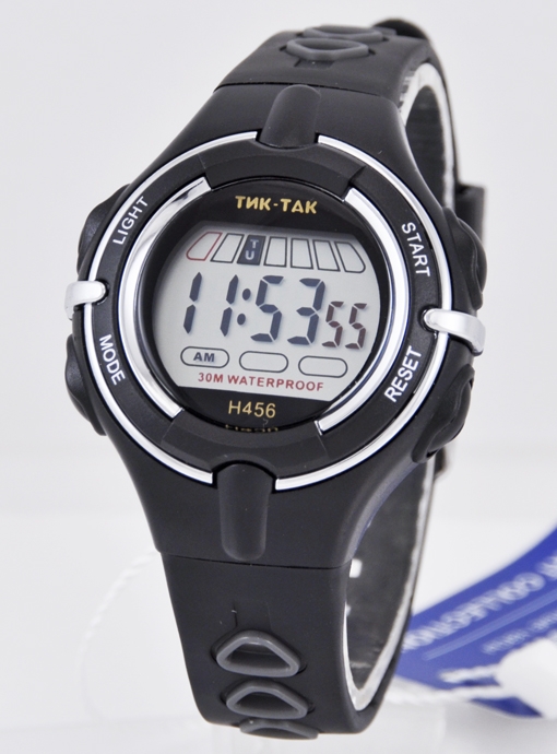 |  нажмите для увеличения | Электронные часы ТИК-ТАК Н456 черные | Материал корпуса | Пластик | | Размеры корпуса | | | длина | 40 мм. | | ширина | 34 мм. | | толщина | 12 мм. | | Материал ремешка/браслета | PU | | Длина часов с ремешком | 225 мм. | | Механизм | Электронный с LCD дисплеем | | Особенности | 12/24 формат времени, дата, будильник, секундомер, подсветка | | Комплектация | Прозрачный пакет, паспорт, инструкция по эксплуатации и гарантийный талон |