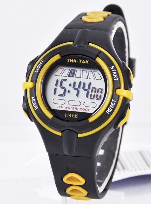 |  нажмите для увеличения | Электронные часы ТИК-ТАК Н456 желтые | Материал корпуса | Пластик | | Размеры корпуса | | | длина | 40 мм. | | ширина | 34 мм. | | толщина | 12 мм. | | Материал ремешка/браслета | PU | | Длина часов с ремешком | 225 мм. | | Механизм | Электронный с LCD дисплеем | | Особенности | 12/24 формат времени, дата, будильник, секундомер, подсветка | | Комплектация | Прозрачный пакет, паспорт, инструкция по эксплуатации и гарантийный талон |