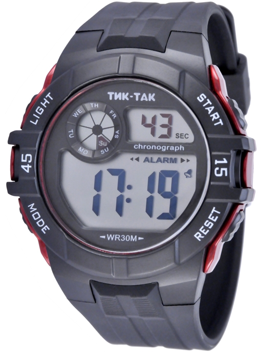 |  нажмите для увеличения | Электронные часы ТИК-ТАК Н464 красные | Материал корпуса | Пластик | | Размеры корпуса | | | длина | 45 мм. | | ширина | 43 мм. | | толщина | 14 мм. | | Материал ремешка/браслета | PU | | Длина часов с ремешком | 235 мм. | | Механизм | Электронный с LCD дисплеем | | Особенности | 12/24 формат времени, дата, будильник, секундомер, подсветка | | Комплектация | Прозрачный пакет, паспорт, инструкция по эксплуатации и гарантийный талон |