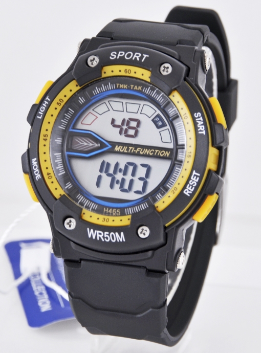 |  нажмите для увеличения | Электронные часы ТИК-ТАК Н465 WR50 желтые | Материал корпуса | Пластик | | Размеры корпуса | | | длина | 40 мм. | | ширина | 40 мм. | | толщина | 14 мм. | | Материал ремешка/браслета | PU | | Длина часов с ремешком | 245 мм. | | Механизм | Электронный с LCD дисплеем | | Особенности | 12/24 формат времени, дата, будильник, секундомер, подсветка. Водонепроницаемость 50м. | | Комплектация | Прозрачный пакет, паспорт, инструкция по эксплуатации и гарантийный талон |