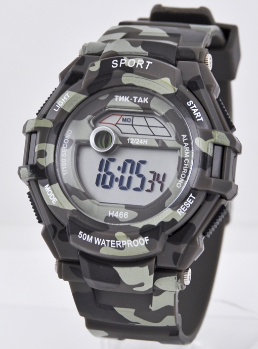 |  нажмите для увеличения | Электронные часы ТИК-ТАК Н466 WR50 хаки | Материал корпуса | Пластик | | Размеры корпуса | | | длина | 50 мм. | | ширина | 43 мм. | | толщина | 14 мм. | | Материал ремешка/браслета | PU | | Длина часов с ремешком | 245 мм. | | Механизм | Электронный с LCD дисплеем | | Особенности | 12/24 формат времени, дата, будильник, секундомер, подсветка. Водонепроницаемость 50м. | | Комплектация | Прозрачный пакет, паспорт, инструкция по эксплуатации и гарантийный талон |
