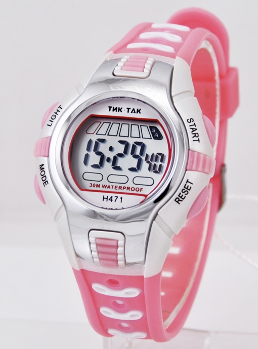 |  нажмите для увеличения | Электронные часы ТИК-ТАК Н471 розовые | Материал корпуса | Пластик | | Размеры корпуса | | | длина | 40 мм. | | ширина | 36 мм. | | толщина | 14 мм. | | Материал ремешка/браслета | PU | | Длина часов с ремешком | 225 мм. | | Механизм | Электронный с LCD дисплеем | | Особенности | 12/24 формат времени, дата, будильник, секундомер, подсветка | | Комплектация | Прозрачный пакет, паспорт, инструкция по эксплуатации и гарантийный талон |