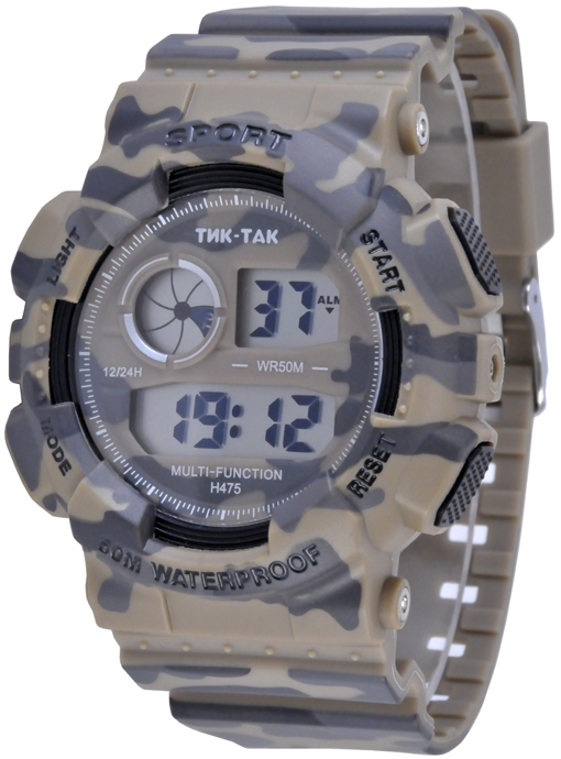 |  нажмите для увеличения | Электронные часы ТИК-ТАК Н475 WR50 коричневые | Материал корпуса | Пластик | | Размеры корпуса | | | длина | 55 мм. | | ширина | 50 мм. | | толщина | 15 мм. | | Материал ремешка/браслета | PU | | Длина часов с ремешком | 250 мм. | | Механизм | Электронный с LCD дисплеем | | Особенности | 12/24 формат времени, дата, будильник, секундомер, подсветка. Водонепроницаемость 50м. | | Комплектация | Прозрачный пакет, паспорт, инструкция по эксплуатации и гарантийный талон |