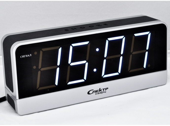 |  нажмите для увеличения | Сетевые будильники СПЕКТР СК1817-С-Б | Материал корпуса | Пластик | | Размеры корпуса | | | высота | 83 мм. | | ширина | 200 мм. | | глубина | 50 мм. | | Особенности | Будильник, регулировка яркости индикации, регулировка громкости сигнала, автоматическое повторение сигнала будильника (snooze), формат времени 24 ч, высота цифр 46 мм | | Комплектация | Упаковочная коробка Спектр, паспорт и инструкция по эксплуатации |